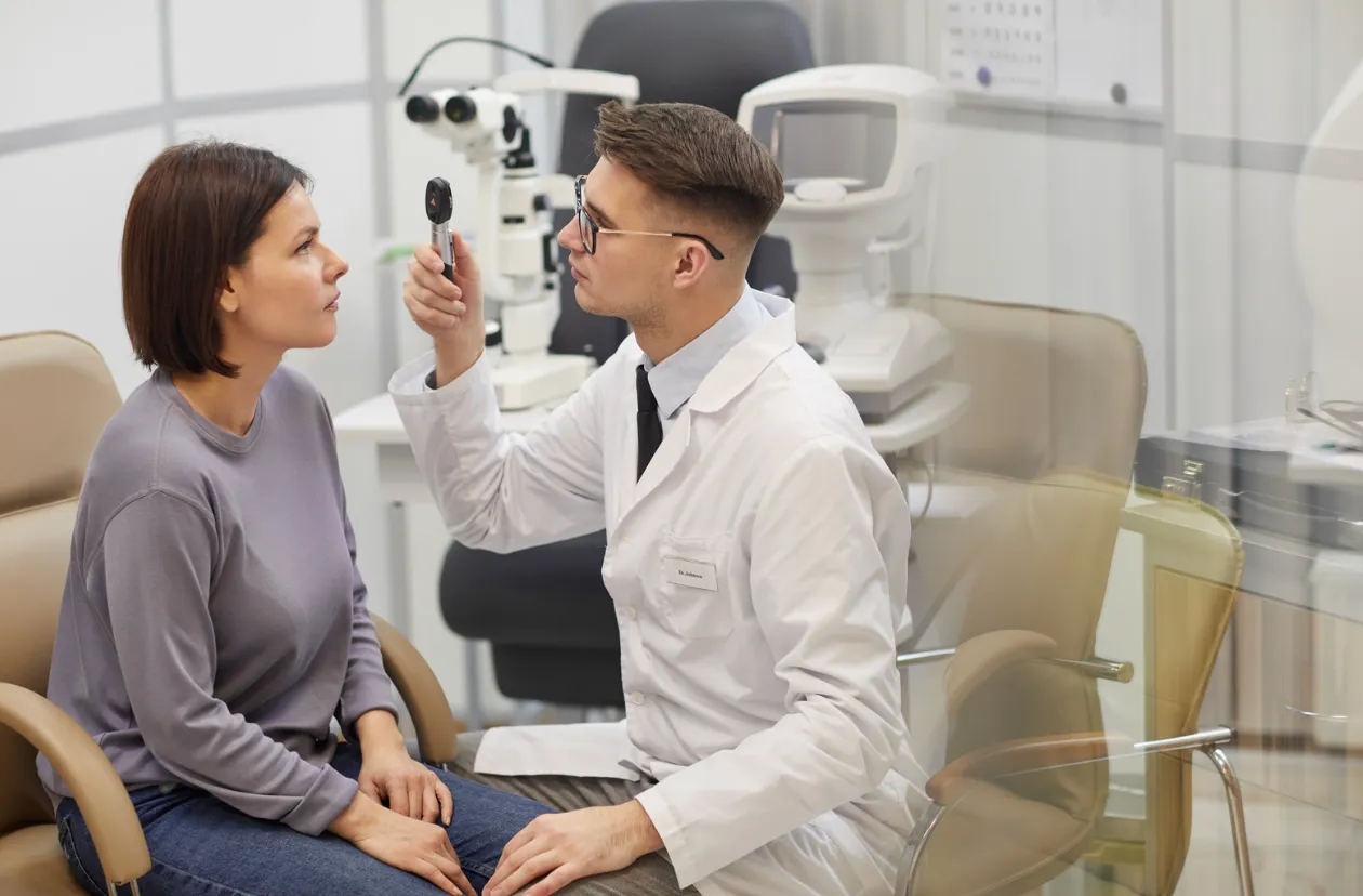 飛蚊症の急な増加、光視症、視野欠損、急激な視力低下・・・これらの症状が現れたら、すぐに眼科を受診してください。